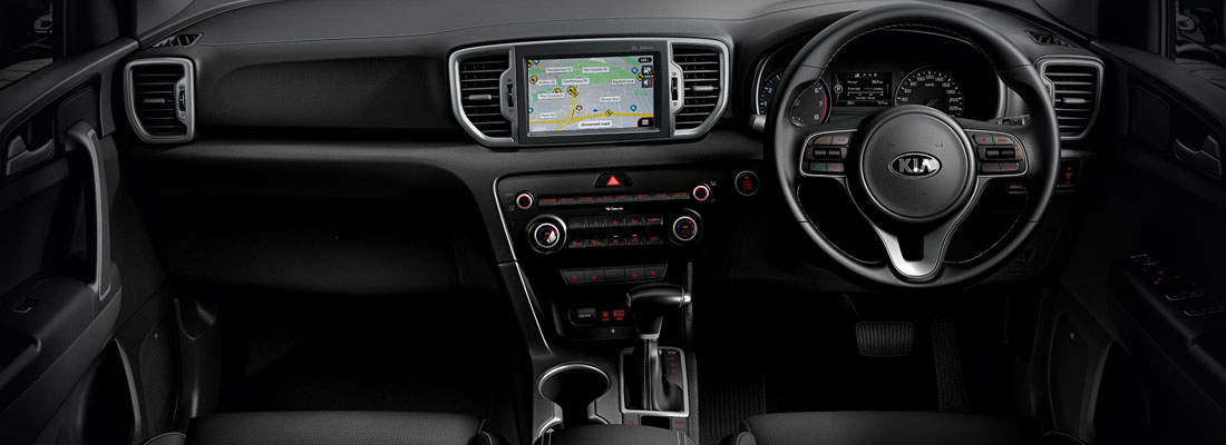 Once inside the cabin of the Kia Sportage, you'll be greeted with the design, quality and style you've come to expect from Kia. A soft touch dashboard trim, large 7.0" LCD screen and purposeful Sportage spaces feature on all models. There's even an option for grey two-tone interior trim on GT Line models, which further adds to the aura of sophistication.